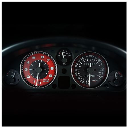 The RevLimiter Burnout Gauge Face Set for 1990-1997 MX 5s blends modern design with unique styling that you’ll love even more at night. These are crafted from Aerospace polymer, laser-cut and digitally screen printed, featuring an OEM textured finish, a 6 o’clock tach/speedometer zero position, and redline at 7000. There is no lighting tint baked into these gauge faces; they illuminate with the bulb that is already installed in your cluster.