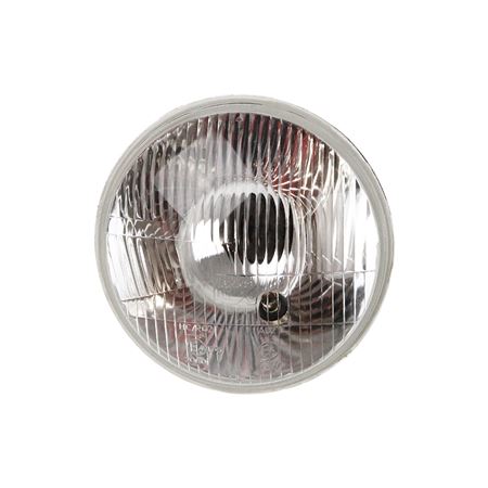 Lucas H4 light unit domed glass and metal reflector. E Marked. RHD with provision for sidelight via a bulb holder that pushes into a rubber grommet. Our recommended wiring harness requires a capless type bulb.