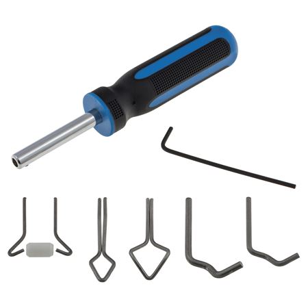 Two lipping tools are included which are used for pulling the rubber windscreen lip back over the glass or metalwork. A hex key is also included to secure the tools to the non-slip handle.