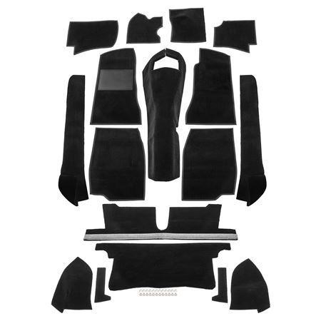 Representing excellent value for money, the standard range is manufactured from high quality materials but the carpet sections are not moulded to the contours of the floor or gearbox tunnel as were the originals. The standard range is available in RHD only. All carpet pieces in standard sets are supplied flat without an integral underfelt backing, while the edges are bound with braiding where appropriate. With care, a neat, near original look can be achieved with these carpet sets.
